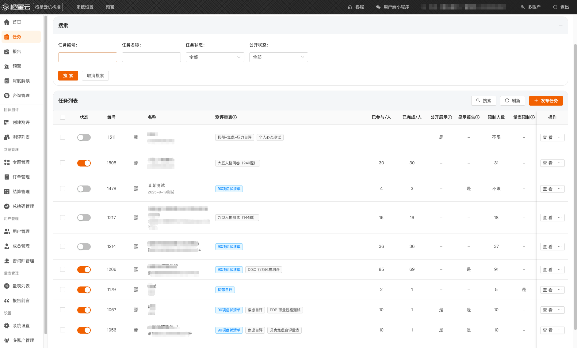 #橙星云机构版#心理测评系统#团体测评#心理saas#心理行业saas平台