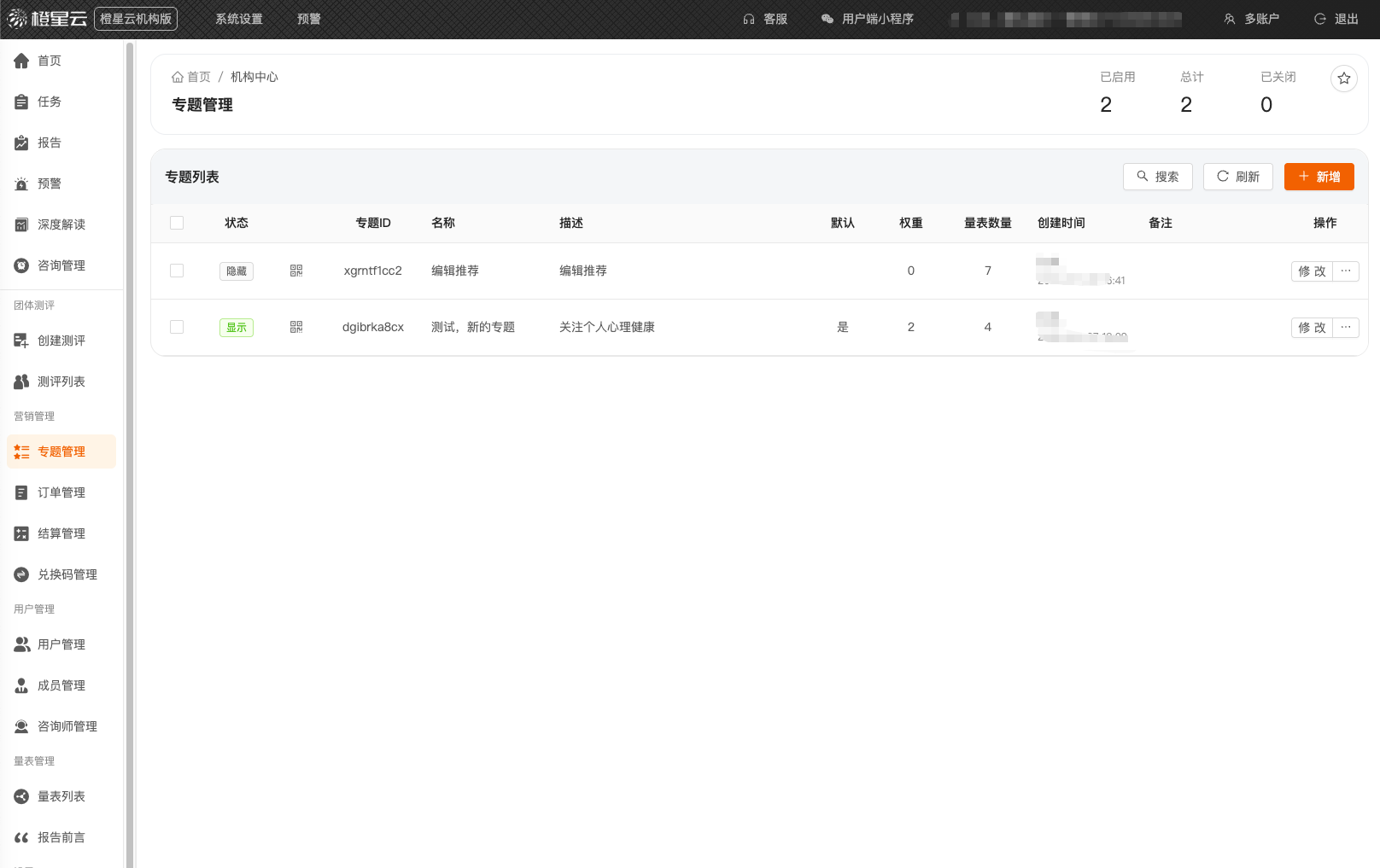 团体测评系统,心理测评系统,心理测评saas系统,心理机构管理后台